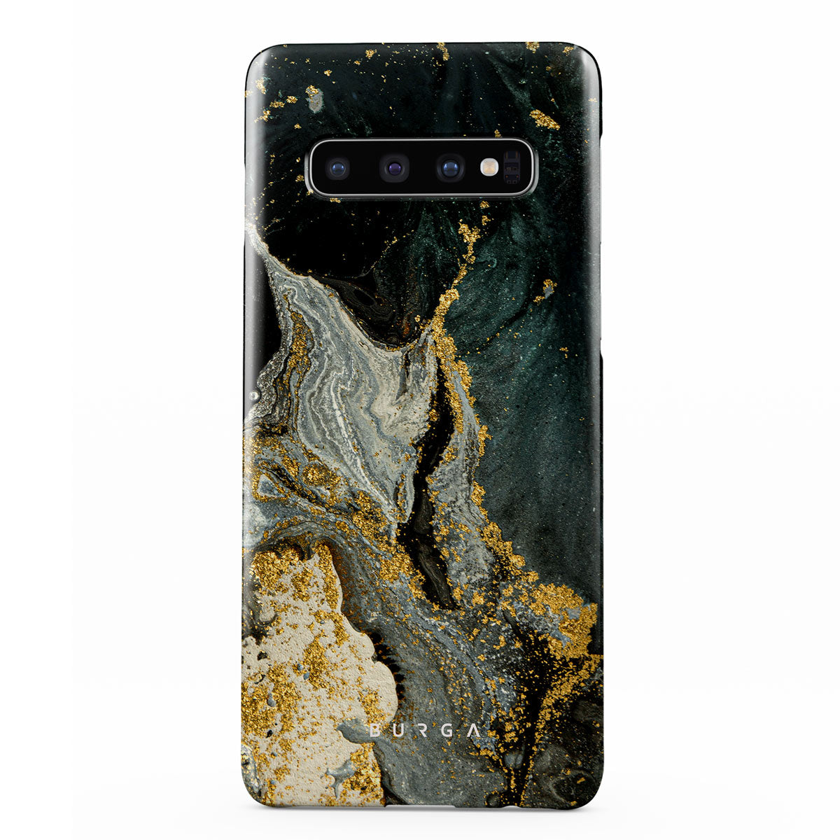 Our cute marble Northern Lights Samsung Galaxy S10 Plus phone case showcases a combination of moss green shades in a marble pattern enriched with golden specks. The asymmetrical design reminding of a star map will add a touch of luxury and mystery to every accessory lover's collection.
