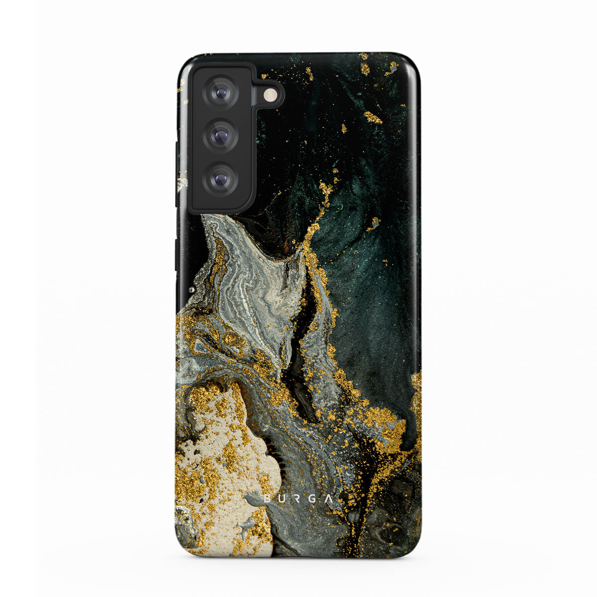 Our cute marble Northern Lights Samsung Galaxy S21 FE phone case showcases a combination of moss green shades in a marble pattern enriched with golden specks. The asymmetrical design reminding of a star map will add a touch of luxury and mystery to every accessory lover's collection.
