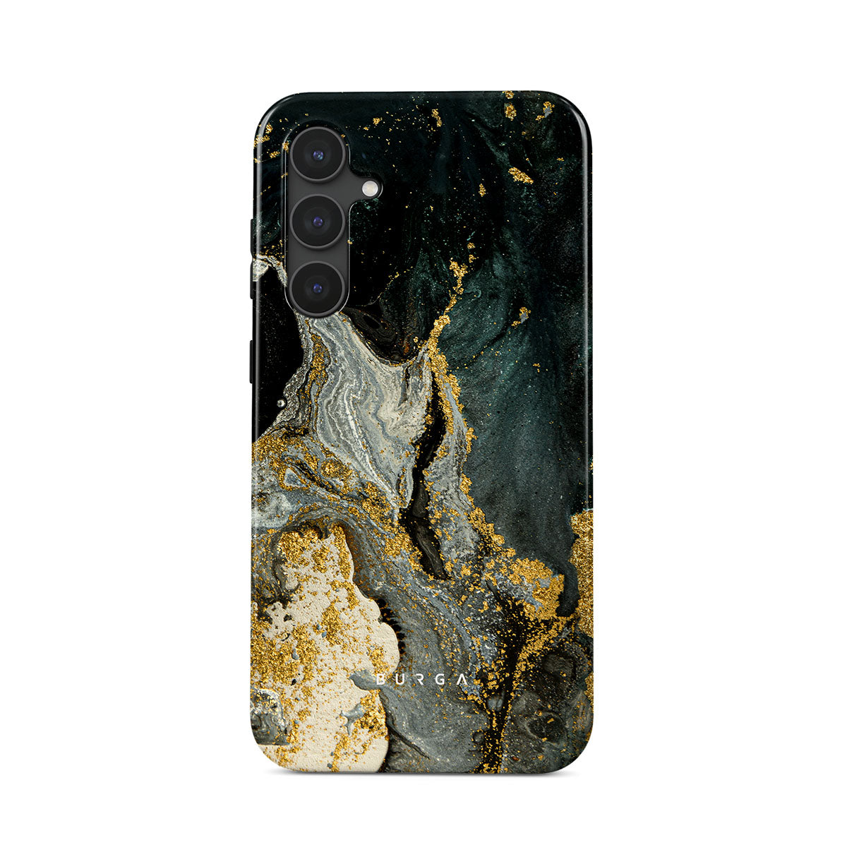 Our cute marble Northern Lights Samsung Galaxy S23 FE phone case showcases a combination of moss green shades in a marble pattern enriched with golden specks. The asymmetrical design reminding of a star map will add a touch of luxury and mystery to every accessory lover's collection.