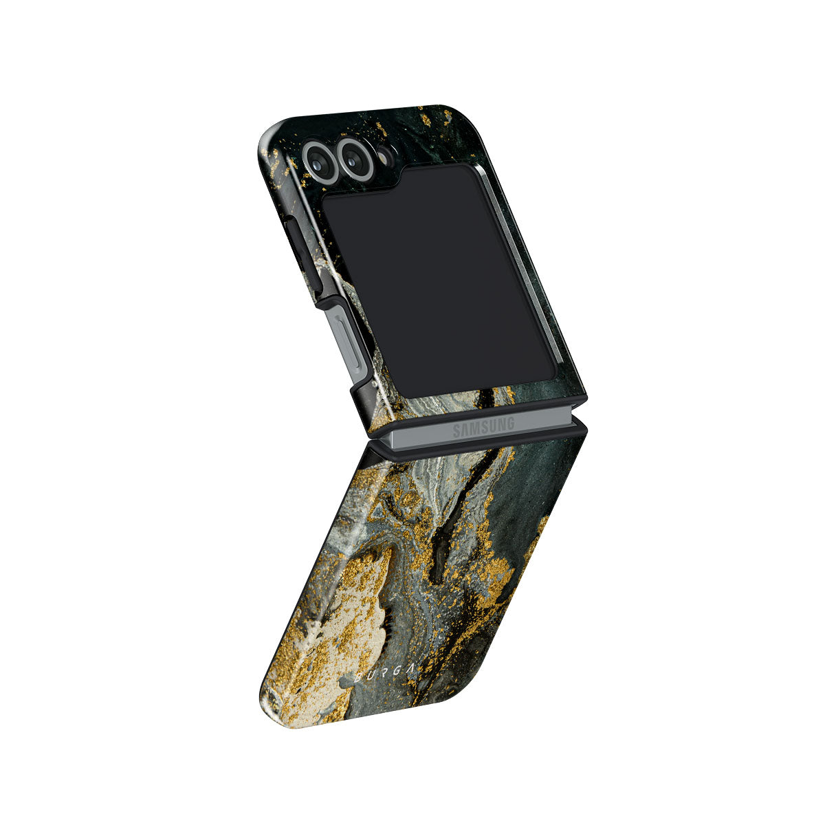 Our cute marble Northern Lights Samsung Galaxy Z Flip 6 phone case showcases a combination of moss green shades in a marble pattern enriched with golden specks. The asymmetrical design reminding of a star map will add a touch of luxury and mystery to every accessory lover's collection.