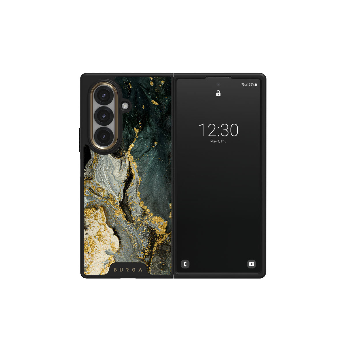 Our cute marble Northern Lights Samsung Galaxy Z Fold 7 phone case showcases a combination of moss green shades in a marble pattern enriched with golden specks. The asymmetrical design reminding of a star map will add a touch of luxury and mystery to every accessory lover's collection.