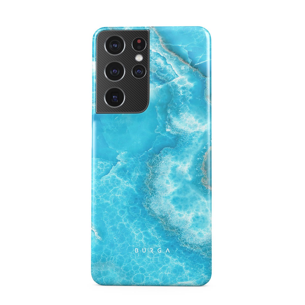 Waves keep crashing down, bringing out lost treasures to the shore. Maybe this one will have the message in the bottle? You may never know what lies in the deeps of the ocean, and our Ocean Waves Samsung Galaxy S21 Ultra phone case brings the mystery in a combination of a stunning blue color and marble pattern. Add protection and color to your phone.
