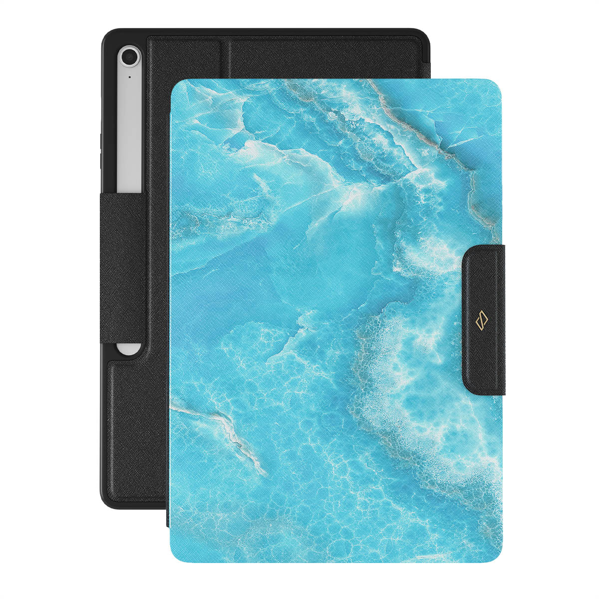 Waves keep crashing down, bringing out lost treasures to the shore. Maybe this one will have the message in the bottle? You may never know what lies in the deeps of the ocean, and our Ocean Waves Samsung Galaxy Tab S10+ FE folio case brings the mystery in a combination of a stunning blue color and marble pattern. Add protection and color to your Galaxy Tab.