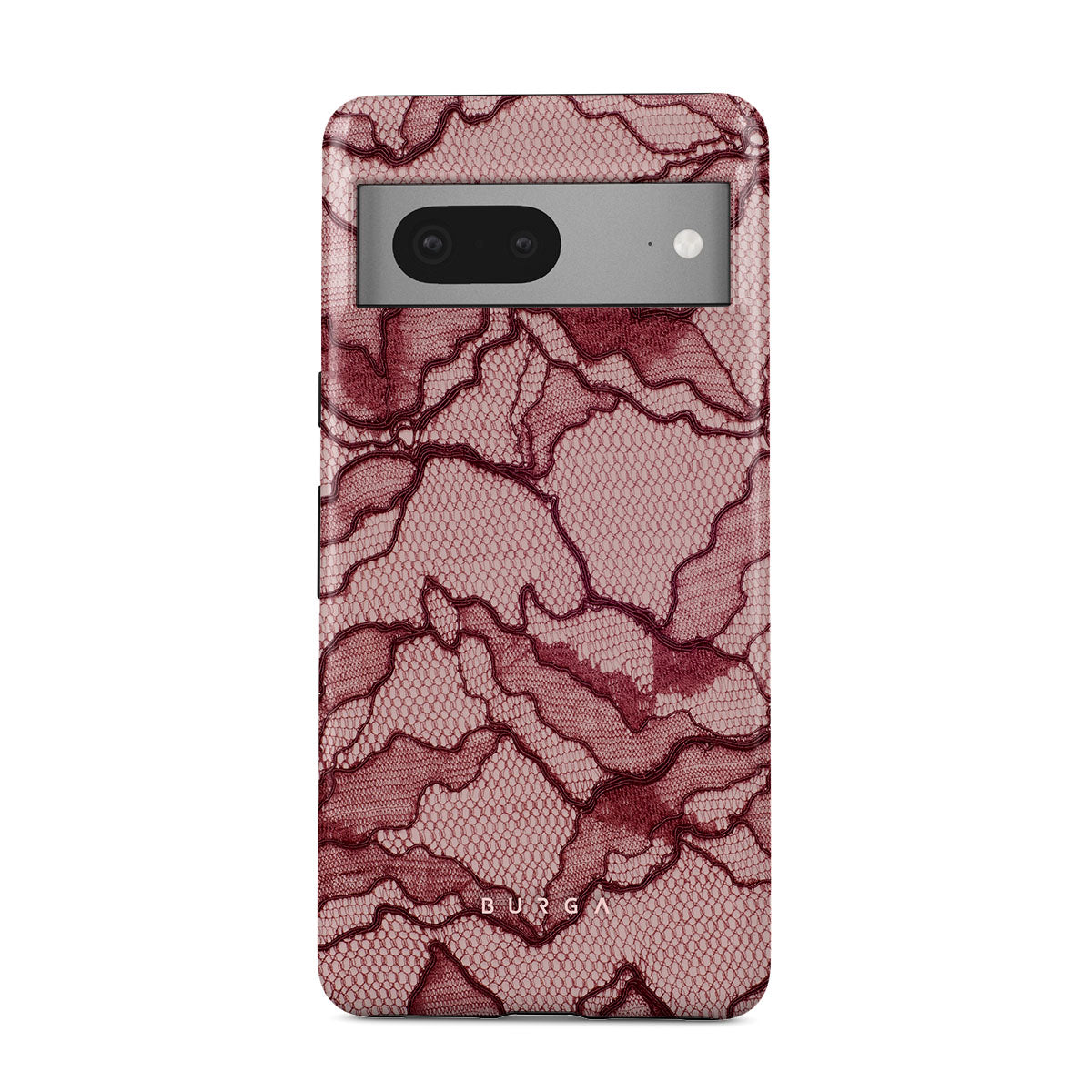 Channel your inner power with our Office Siren Google Pixel 7a phone case design. A soft rosé backdrop and dark pink lace blend elegance and boldness, perfect for those who make quiet yet undeniable statements with confidence.