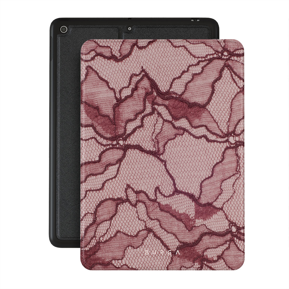 Channel your inner power with our Office Siren iPad 10.2 (9th/8th/7th Gen) folio case design. A soft rosé backdrop and dark pink lace blend elegance and boldness, perfect for those who make quiet yet undeniable statements with confidence.