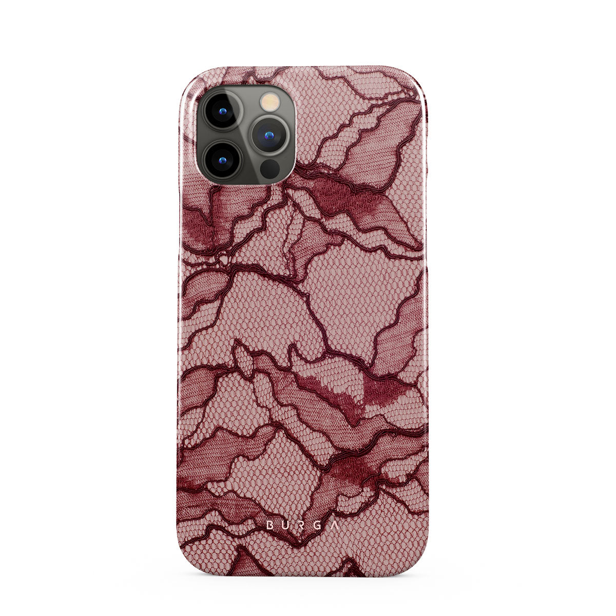 Channel your inner power with our Office Siren iPhone 12 Pro Max phone case design. A soft rosé backdrop and dark pink lace blend elegance and boldness, perfect for those who make quiet yet undeniable statements with confidence.
