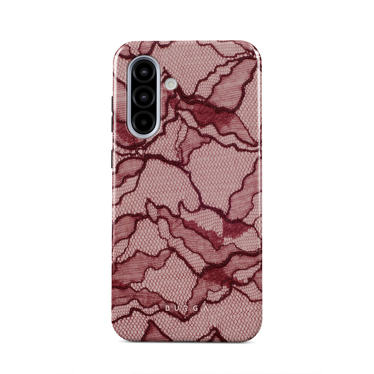 Channel your inner power with our Office Siren Samsung Galaxy A36 5G phone case design. A soft rosé backdrop and dark pink lace blend elegance and boldness, perfect for those who make quiet yet undeniable statements with confidence.