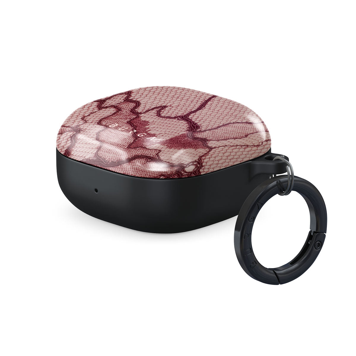Channel your inner power with our Office Siren Samsung Galaxy Buds 2 case cover design. A soft rosé backdrop and dark pink lace blend elegance and boldness, perfect for those who make quiet yet undeniable statements with confidence.