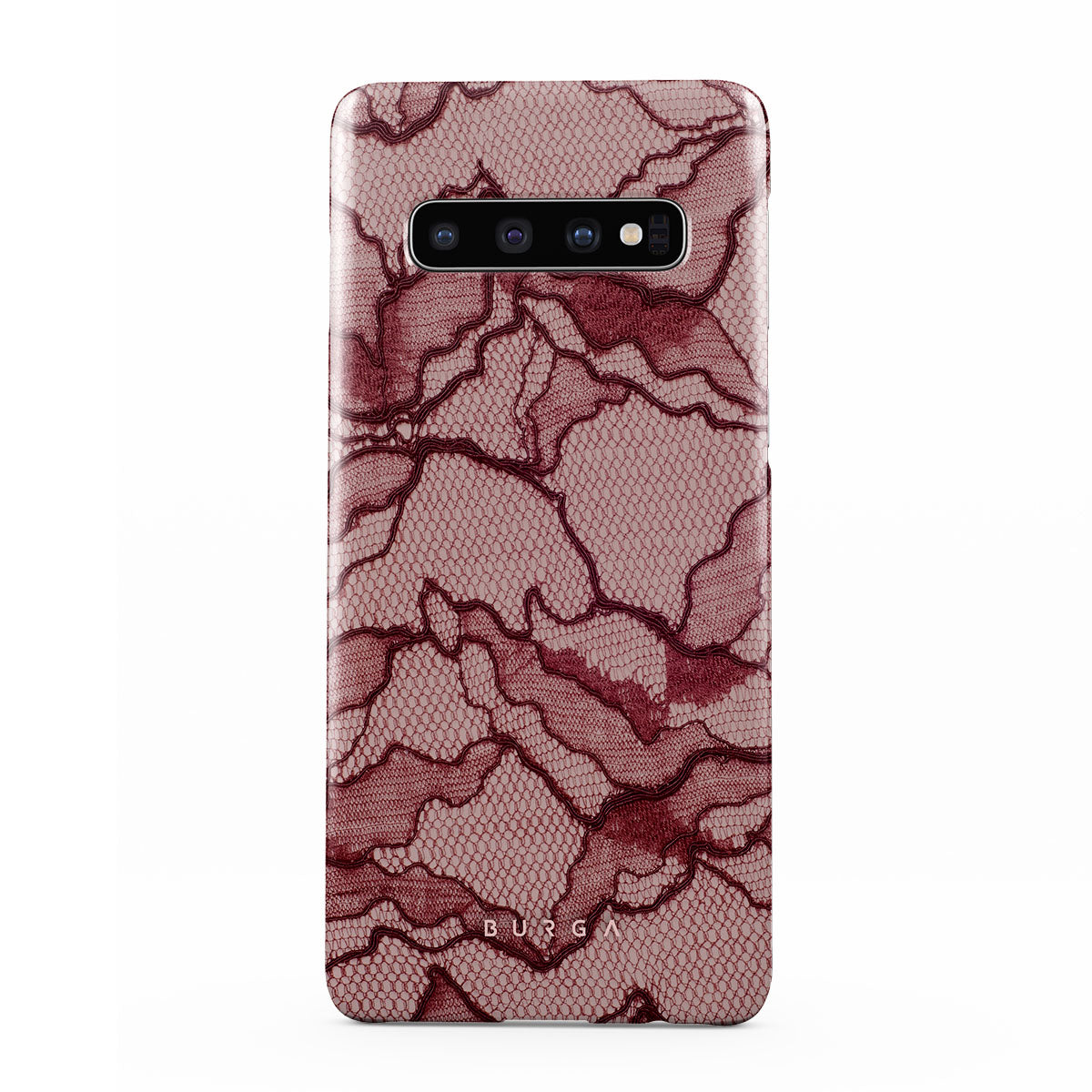 Channel your inner power with our Office Siren Samsung Galaxy S10 Plus phone case design. A soft rosé backdrop and dark pink lace blend elegance and boldness, perfect for those who make quiet yet undeniable statements with confidence.