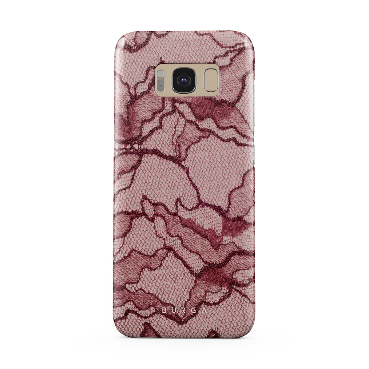 Channel your inner power with our Office Siren Samsung Galaxy S8 phone case design. A soft rosé backdrop and dark pink lace blend elegance and boldness, perfect for those who make quiet yet undeniable statements with confidence.