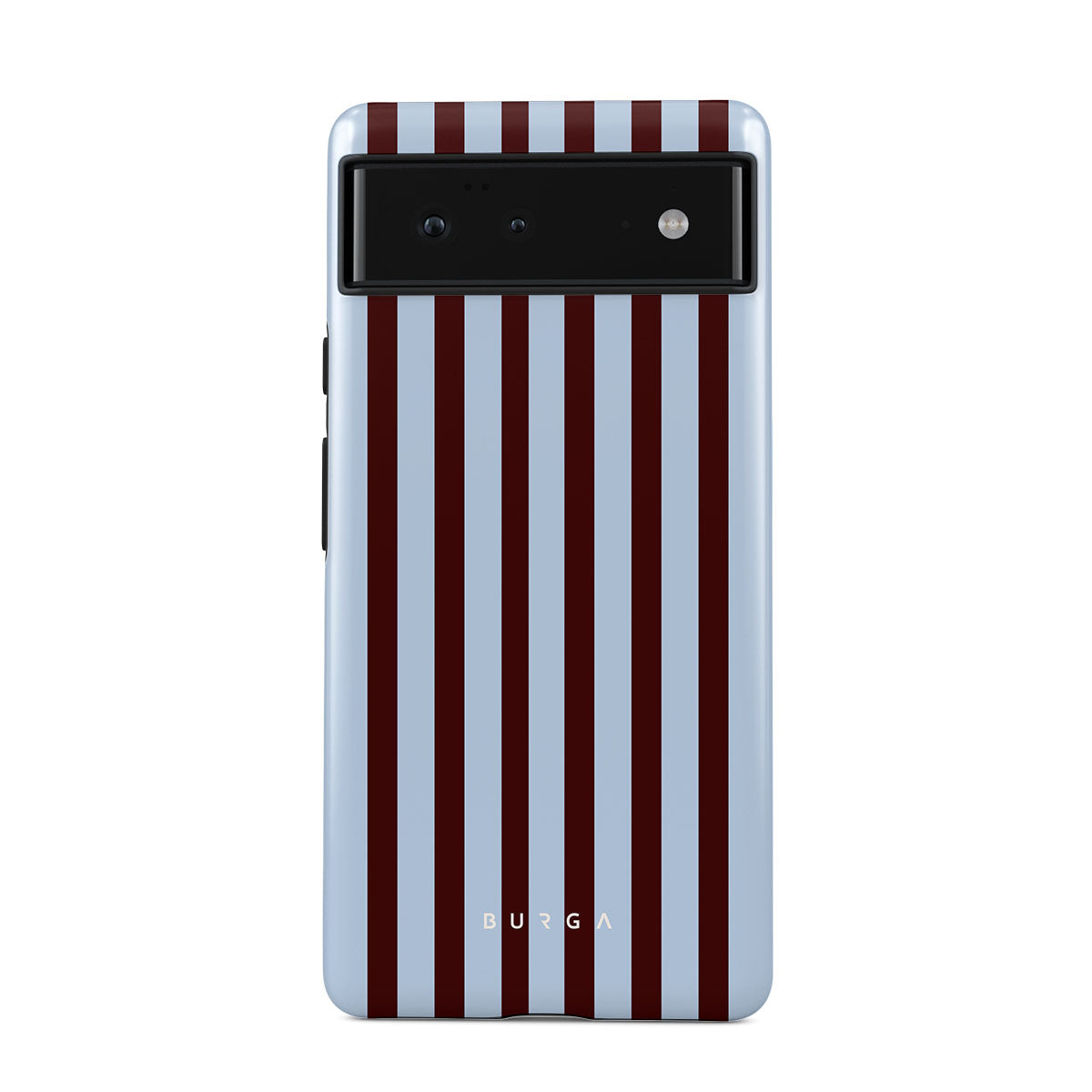 Brown, blue, and emotionally unavailable. This striped Google Pixel 6a phone case design says, “I turned off my Slack notifications and found inner peace.” Or at least a cute aesthetic.