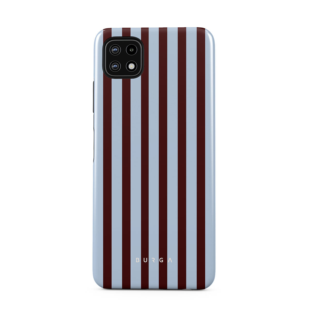 Brown, blue, and emotionally unavailable. This striped Samsung Galaxy A22 5G phone case design says, “I turned off my Slack notifications and found inner peace.” Or at least a cute aesthetic.