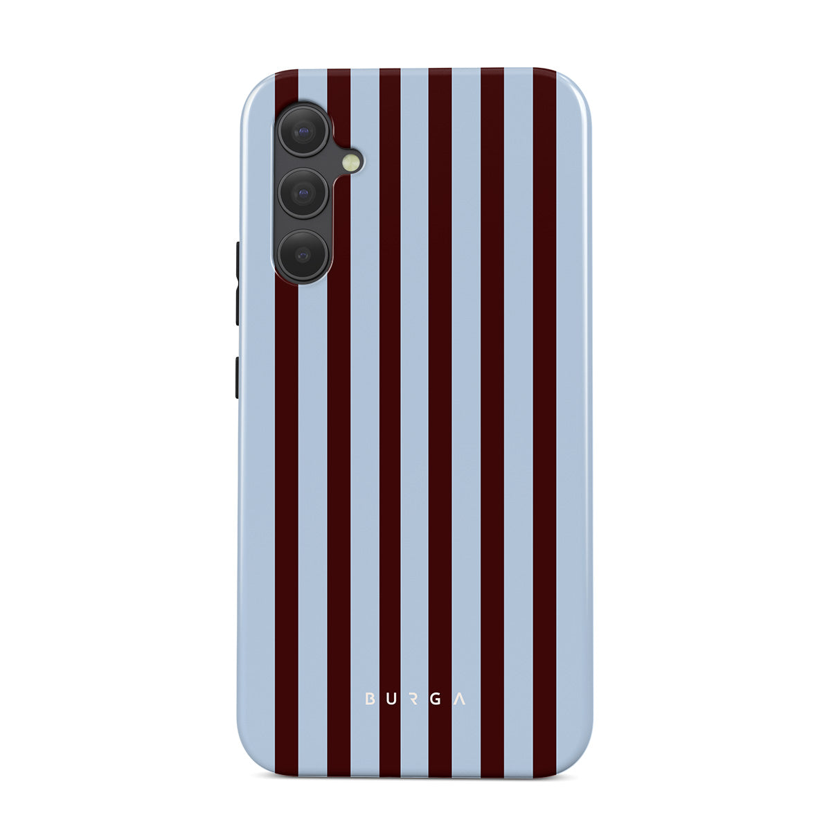 Brown, blue, and emotionally unavailable. This striped Samsung Galaxy A34 phone case design says, “I turned off my Slack notifications and found inner peace.” Or at least a cute aesthetic.