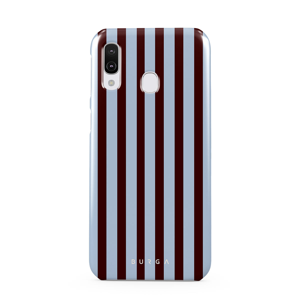 Brown, blue, and emotionally unavailable. This striped Samsung Galaxy A40 phone case design says, “I turned off my Slack notifications and found inner peace.” Or at least a cute aesthetic.