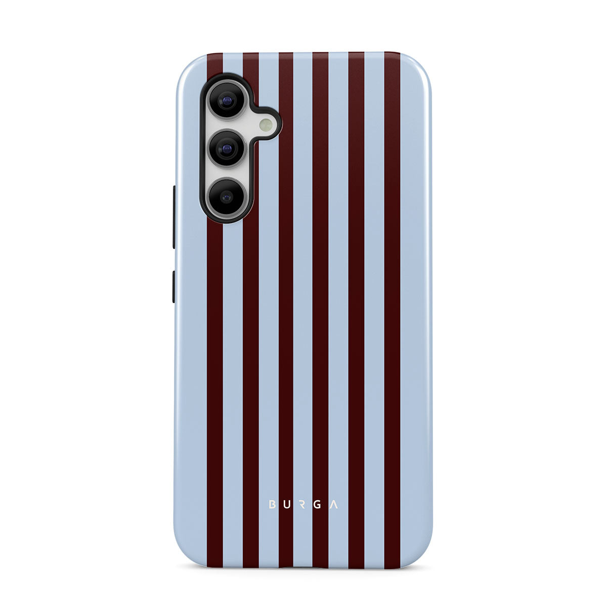 Brown, blue, and emotionally unavailable. This striped Samsung Galaxy A54 phone case design says, “I turned off my Slack notifications and found inner peace.” Or at least a cute aesthetic.