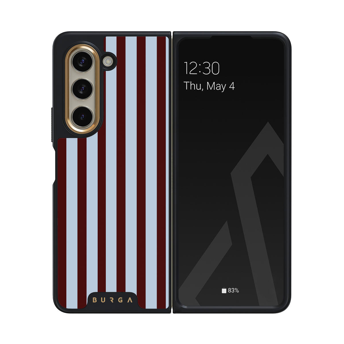 Brown, blue, and emotionally unavailable. This striped Samsung Galaxy Z Fold 5 phone case design says, “I turned off my Slack notifications and found inner peace.” Or at least a cute aesthetic.