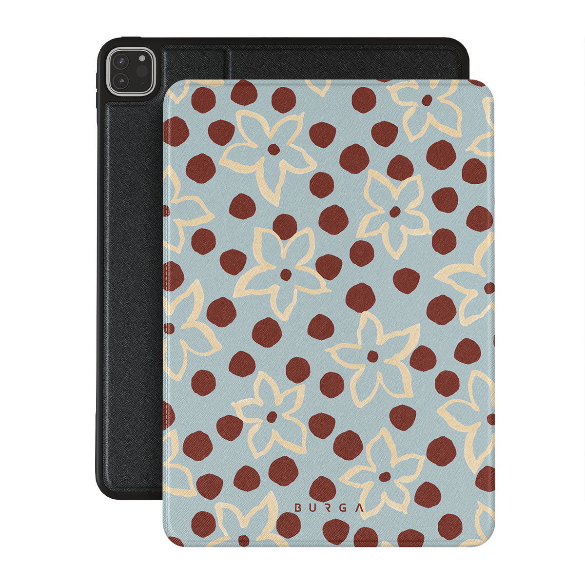The Frutaria iPad Pro 11 (4th/3rd Gen) design: retro surf motel wallpaper meets vintage ceramics. The soft florals, earthy dots, and cool-toned palette give major “forgotten seaside town in the ‘70s” energy.