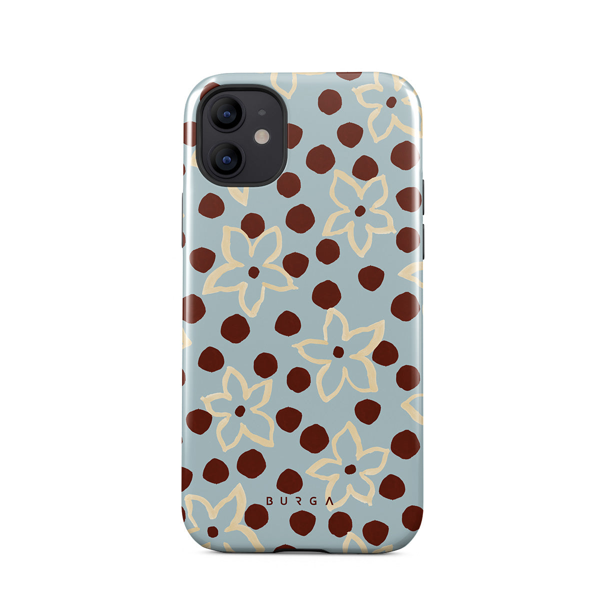 The Frutaria iPhone 12 phone case design design: retro surf motel wallpaper meets vintage ceramics. The soft florals, earthy dots, and cool-toned palette give major “forgotten seaside town in the ‘70s” energy.