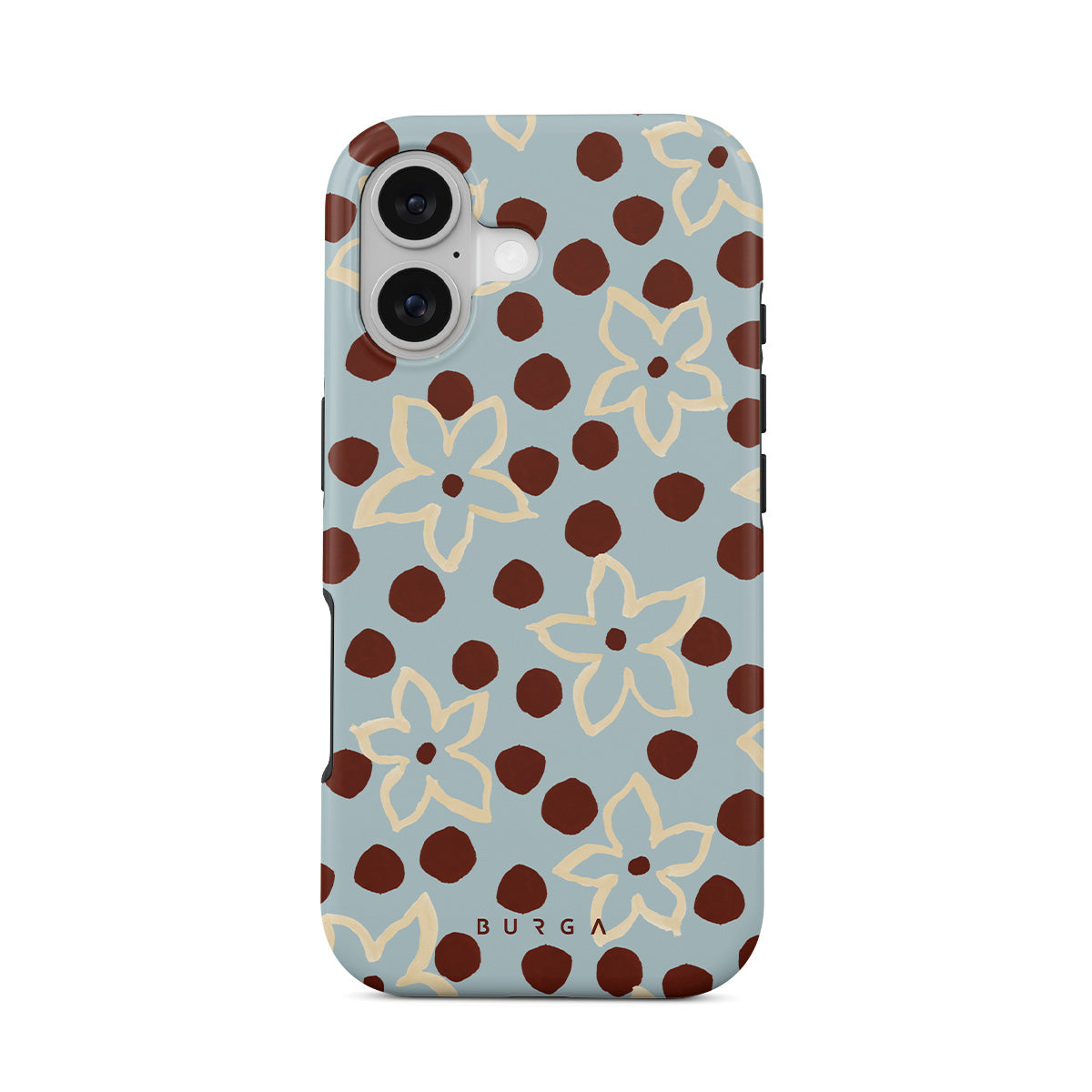 The Frutaria iPhone 17 phone case design design: retro surf motel wallpaper meets vintage ceramics. The soft florals, earthy dots, and cool-toned palette give major “forgotten seaside town in the ‘70s” energy.