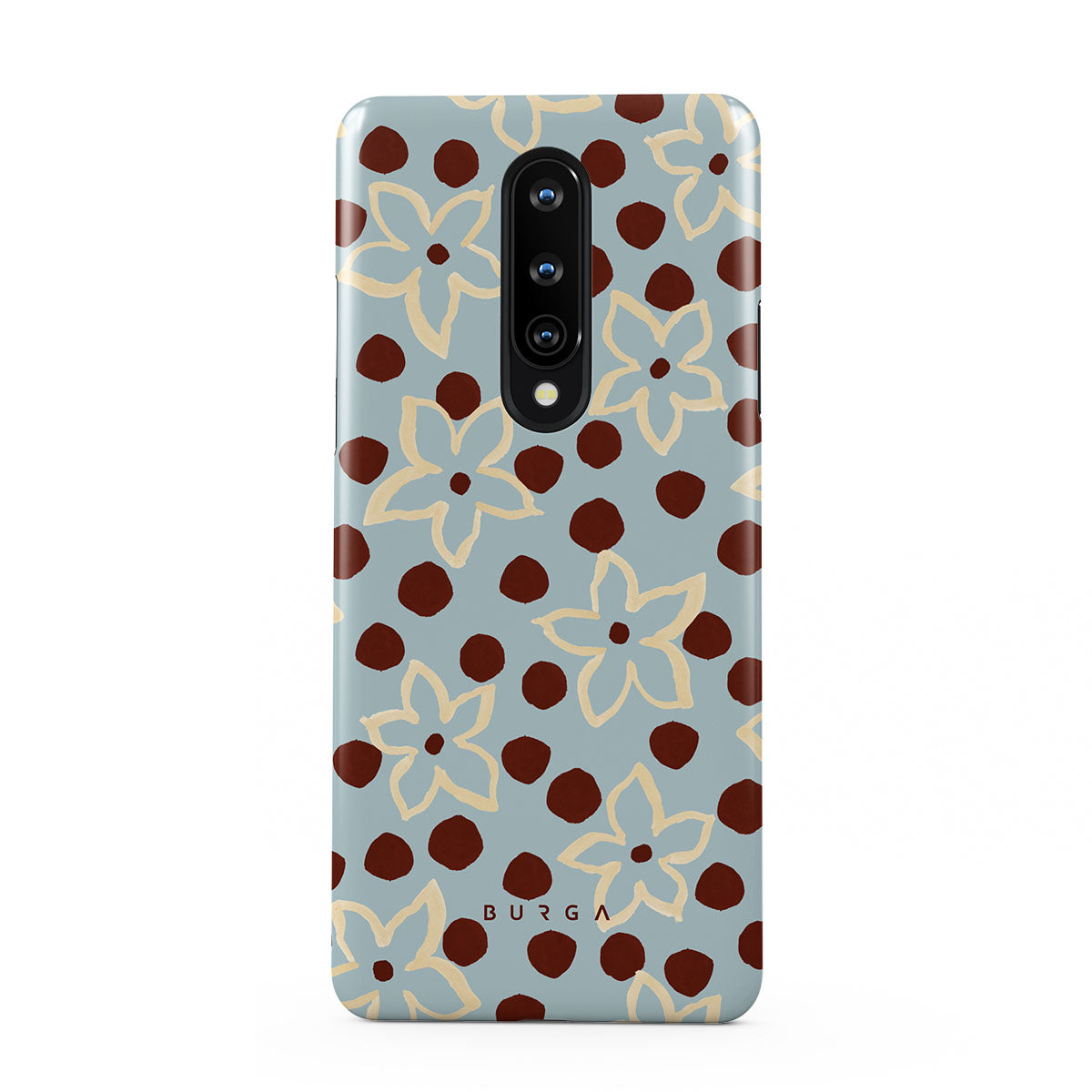 The Frutaria OnePlus 8 phone case design design: retro surf motel wallpaper meets vintage ceramics. The soft florals, earthy dots, and cool-toned palette give major “forgotten seaside town in the ‘70s” energy.