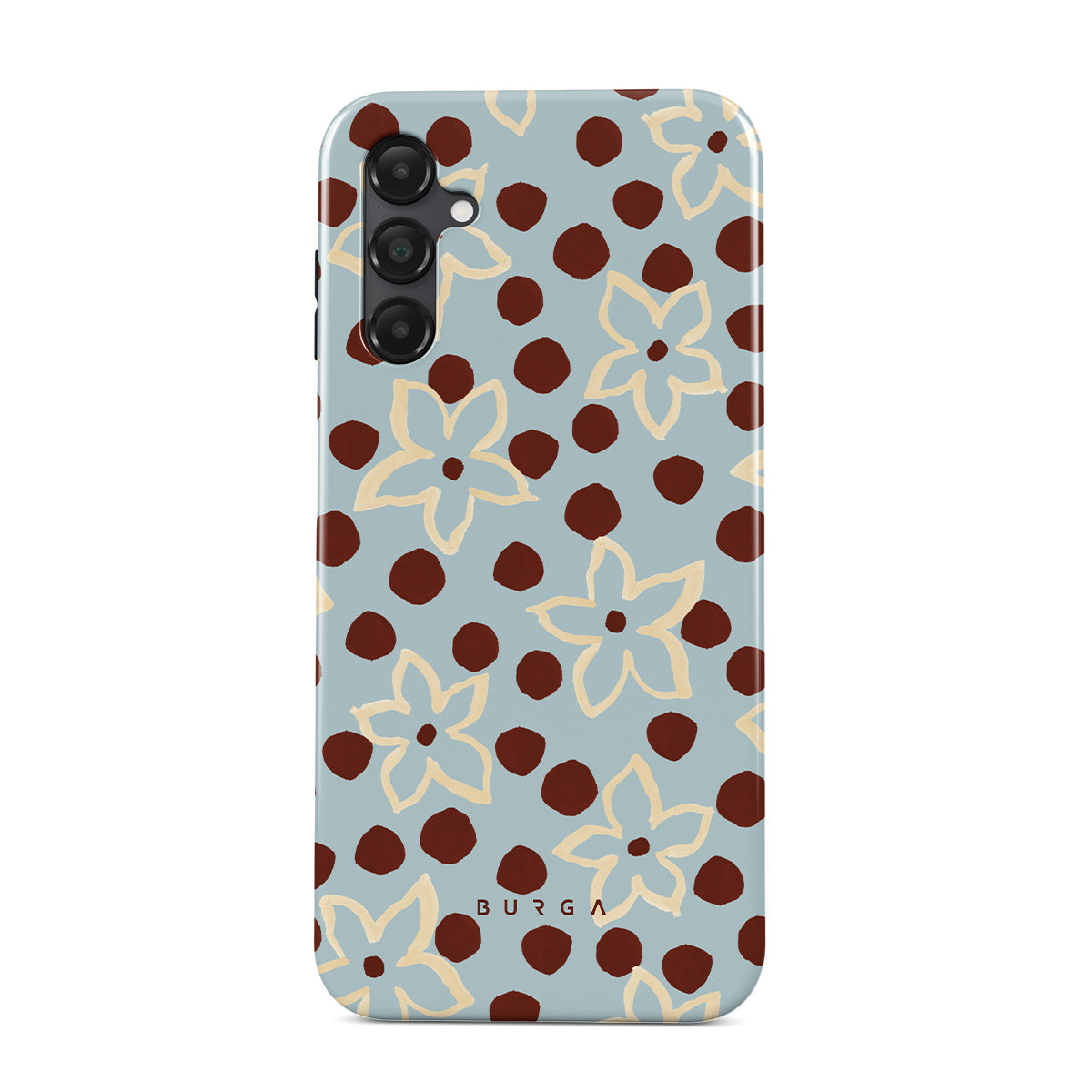 The Frutaria Samsung Galaxy A14 5G phone case design design: retro surf motel wallpaper meets vintage ceramics. The soft florals, earthy dots, and cool-toned palette give major “forgotten seaside town in the ‘70s” energy.