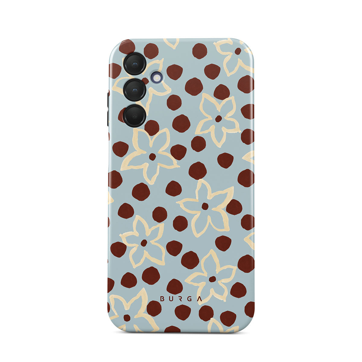The Frutaria Samsung Galaxy A15 4G / 5G phone case design design: retro surf motel wallpaper meets vintage ceramics. The soft florals, earthy dots, and cool-toned palette give major “forgotten seaside town in the ‘70s” energy.