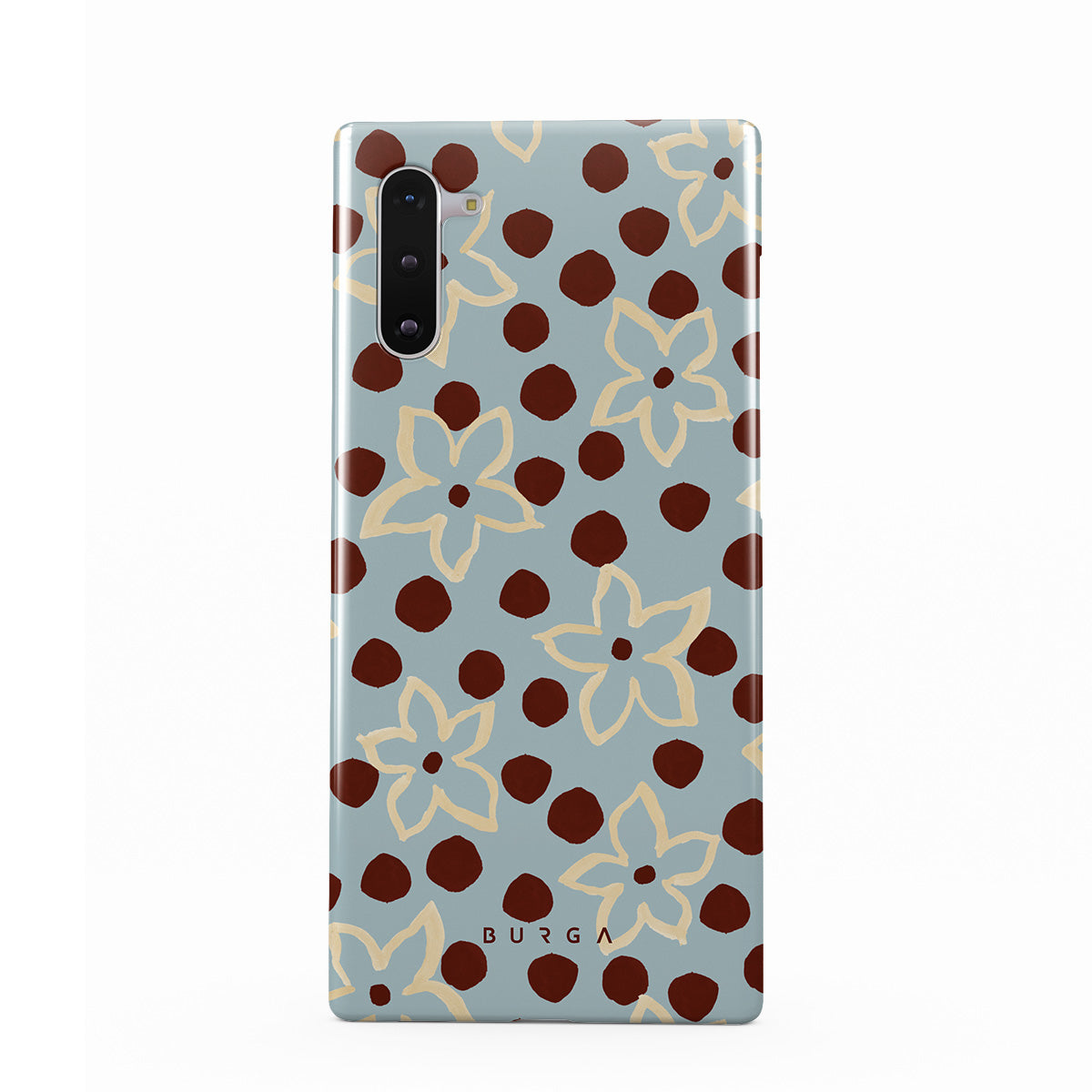 The Frutaria Samsung Galaxy Note 10 phone case design design: retro surf motel wallpaper meets vintage ceramics. The soft florals, earthy dots, and cool-toned palette give major “forgotten seaside town in the ‘70s” energy.