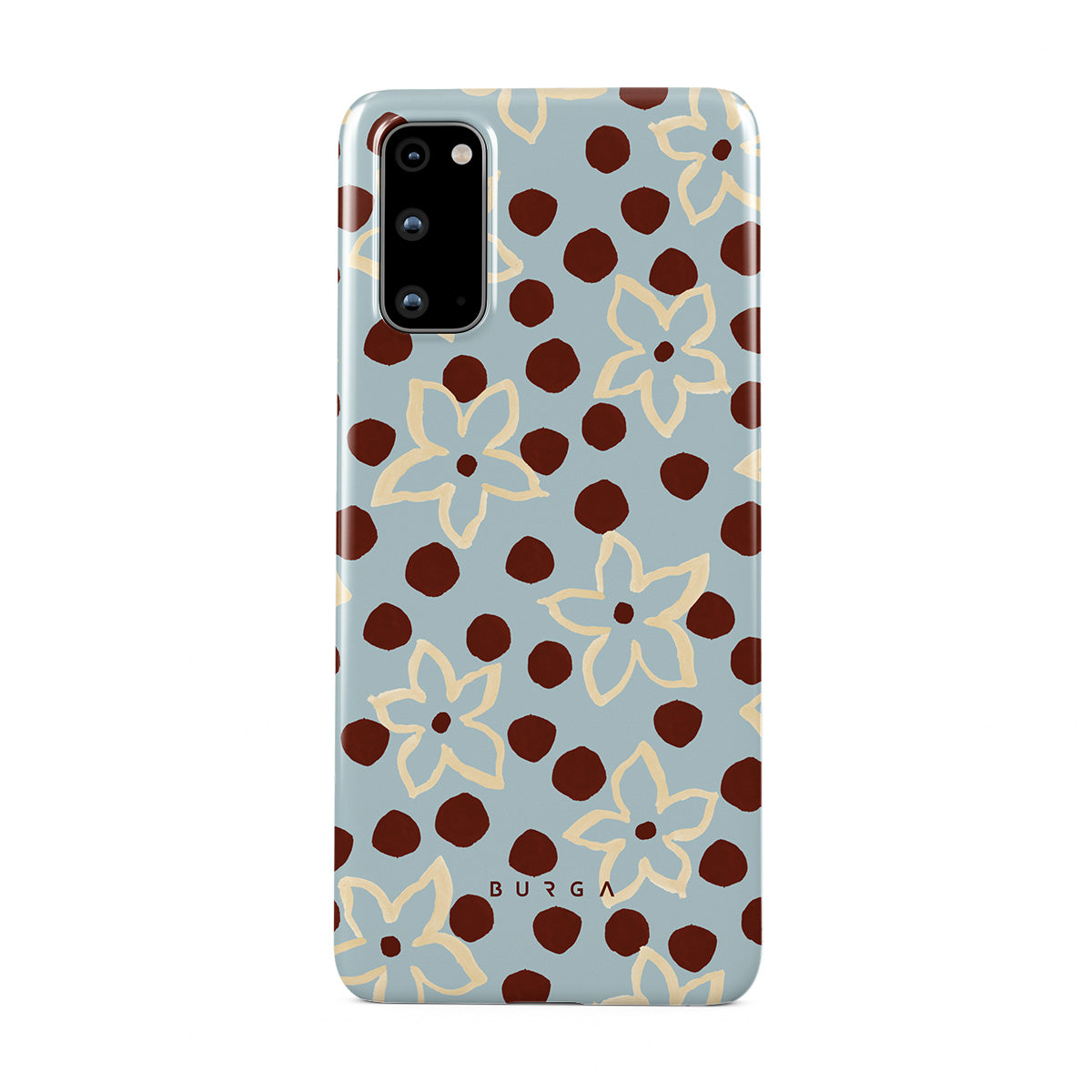 The Frutaria Samsung Galaxy S20 4G / 5G phone case design design: retro surf motel wallpaper meets vintage ceramics. The soft florals, earthy dots, and cool-toned palette give major “forgotten seaside town in the ‘70s” energy.