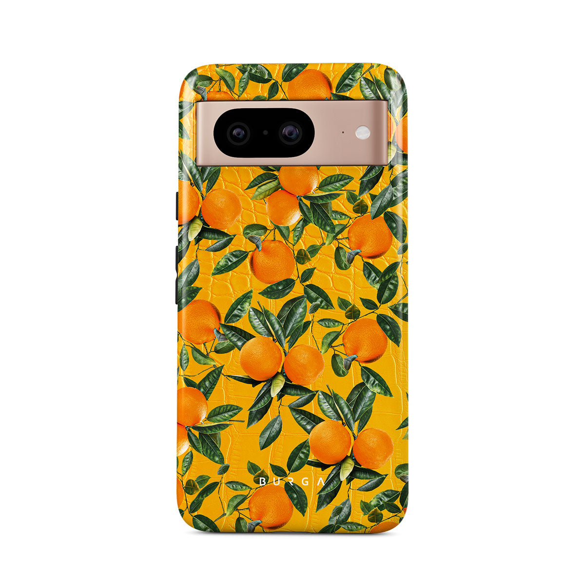 Orange Lemonade Google Pixel 8 phone case showcases a unique combination of vibrant orange croco design with plenty of mouth-watering oranges on top. With this energetic design, protect your phone and keep your spirits up.