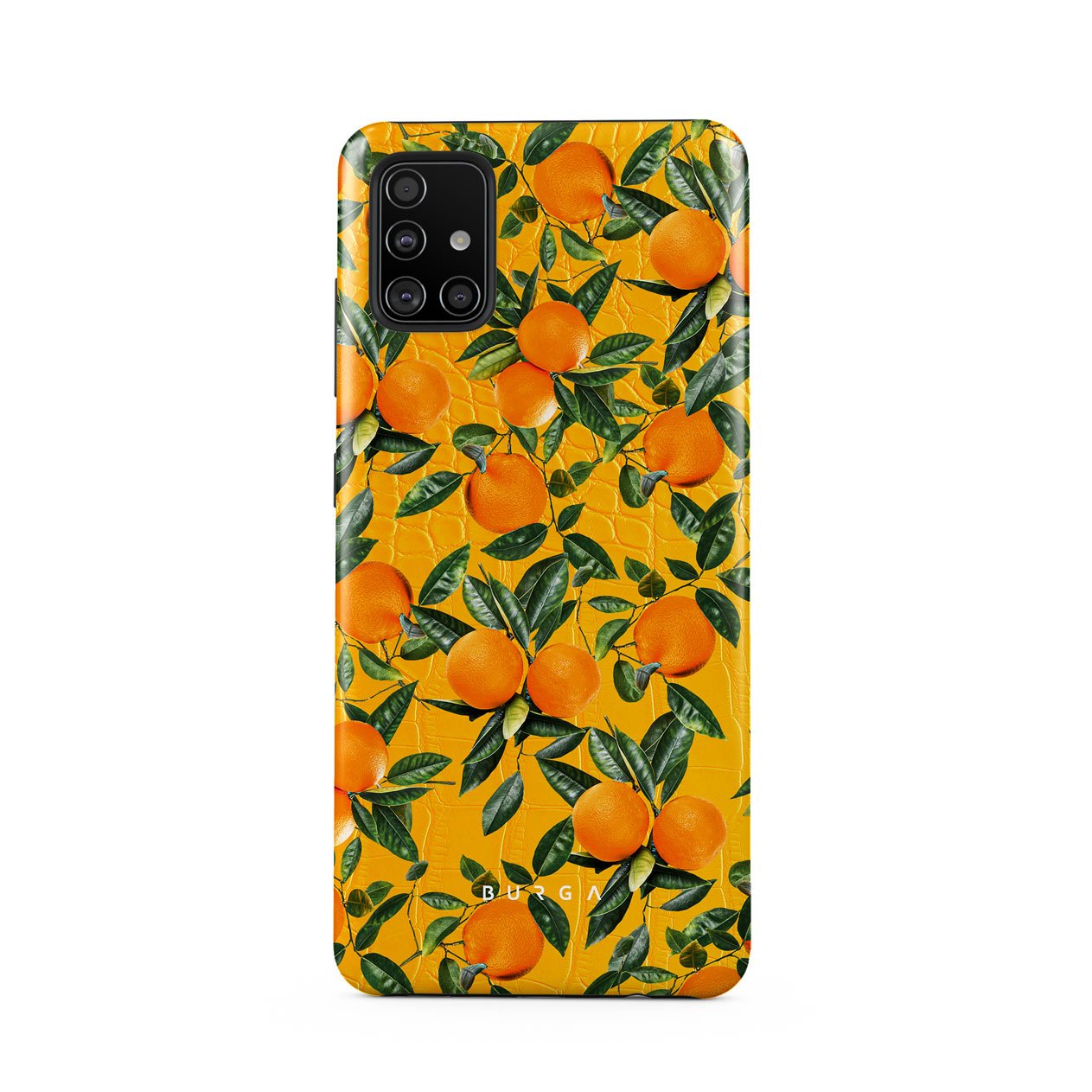 Orange Lemonade Samsung Galaxy A51 phone case showcases a unique combination of vibrant orange croco design with plenty of mouth-watering oranges on top. With this energetic design, protect your phone and keep your spirits up.