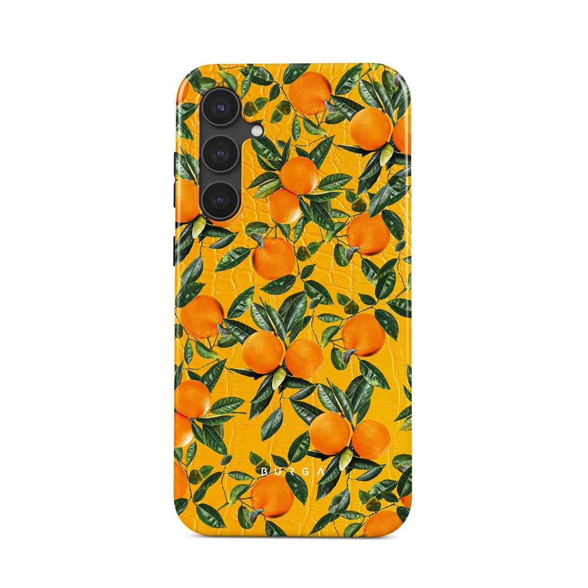 Orange Lemonade Samsung Galaxy S23 FE phone case showcases a unique combination of vibrant orange croco design with plenty of mouth-watering oranges on top. With this energetic design, protect your phone and keep your spirits up.