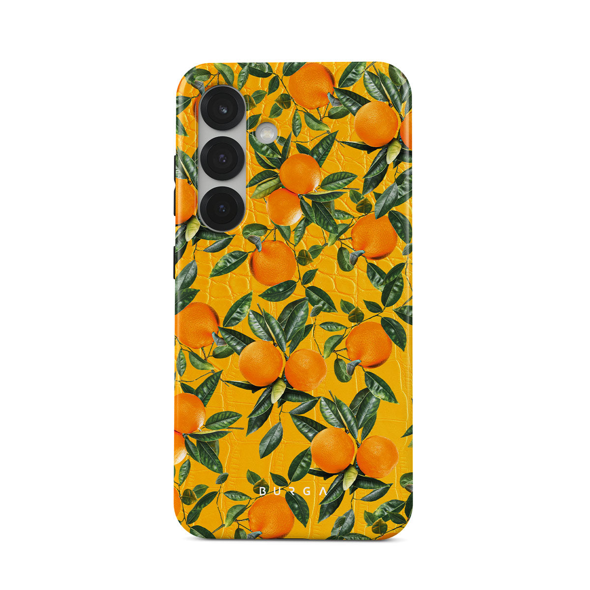 Orange Lemonade Samsung Galaxy S25 phone case showcases a unique combination of vibrant orange croco design with plenty of mouth-watering oranges on top. With this energetic design, protect your phone and keep your spirits up.