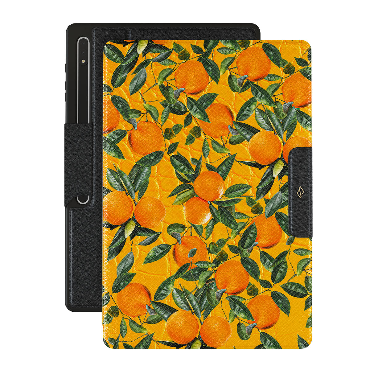 Orange Lemonadeit is a printed pattern * Samsung Galaxy Tab S10 Ultra folio case showcases a unique combination of vibrant orange croco design with plenty of mouth-watering oranges on top. With this energetic design, protect your Galaxy Tab and keep your spirits up.