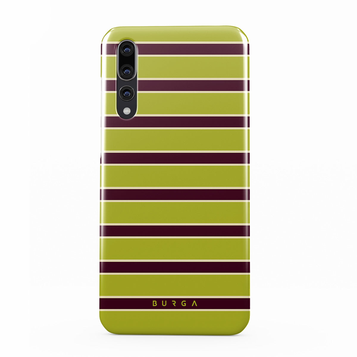 This design features: thick horizontal stripes in lime green and burgundy .