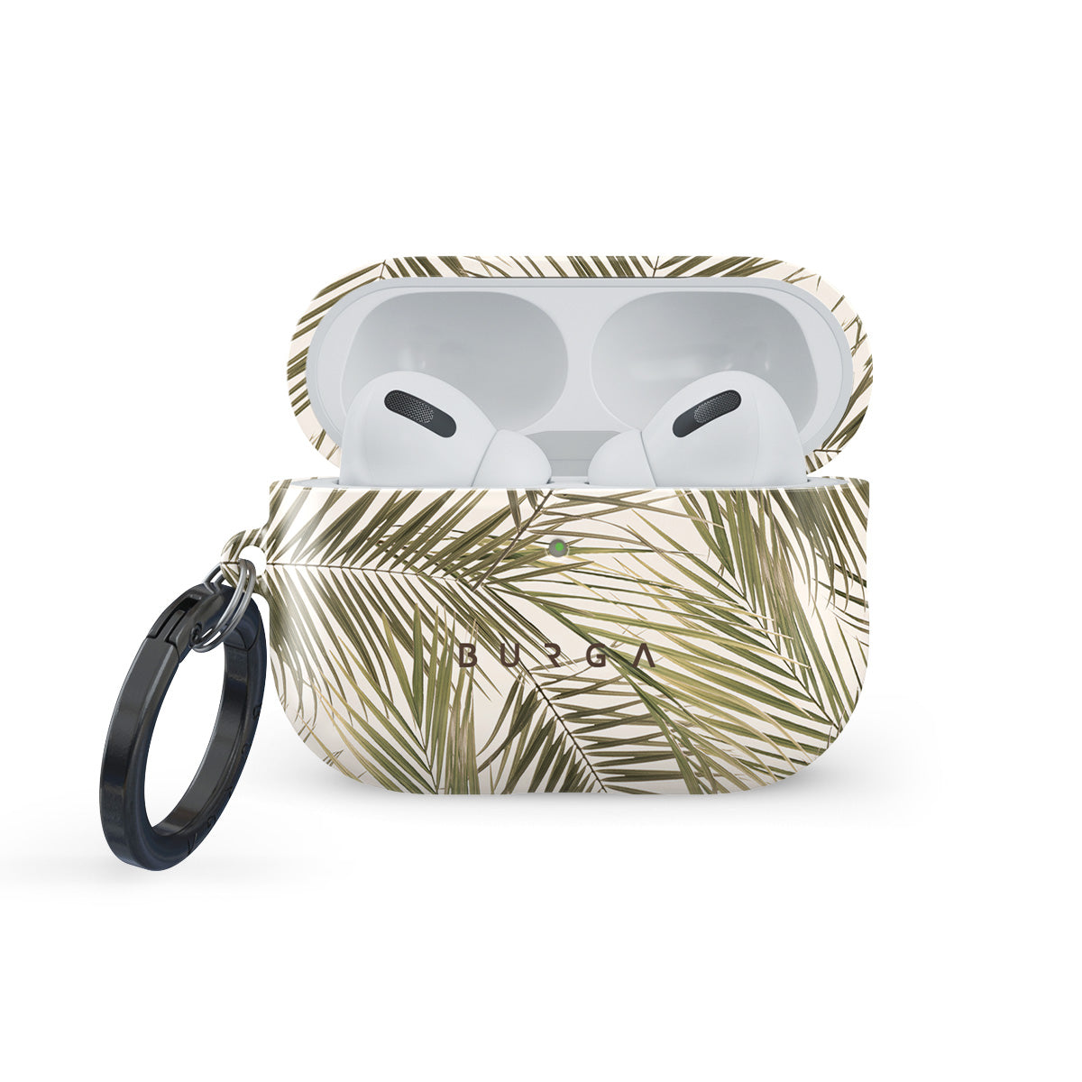 Make a statement with our unique Apple AirPods Pro 3 case cover with soft palm leaves design and create a perfect accessory out of your beloved tech. Now you can make your AirPods Pro 3 to match your style while also keeping them safe. Our case fits perfectly snug around Apple AirPods Pro 3 . “Like a glove!” one might say. And it won’t disrupt the wireless charging capabilities of the newer model. There’s even an LED light indicator to prove it (don’t worry, wired charging still works, too). When fitted, the BURGA case will protect the delicate Apple AirPods Pro 3 case beneath it from scratches, bumps, and drops while remaining scratch-free itself. Our signature design pattern prints are High Quality, and will never peel or fade away- thanks to our unique printing technology. And finally, a handy carabiner is there to make your life easier and more convenient: just snap it around your keys or belt loop and tackle the day head-on. Your music is right there by your side when you need it.