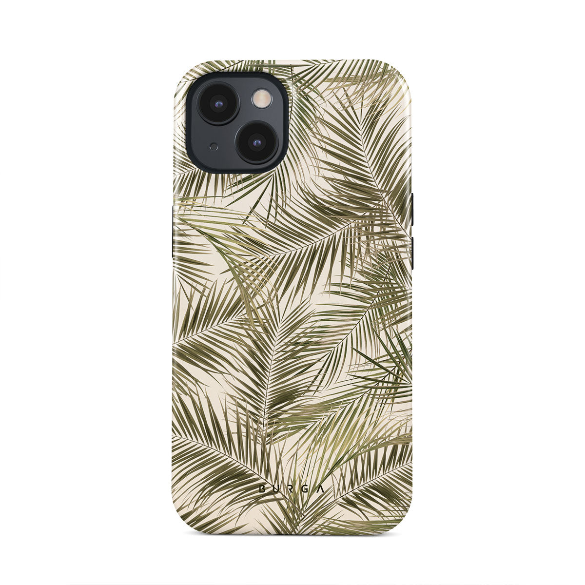 Some find happiness in the endless possibilities, and others find joy in the moments of relief. Can it be that you will find your happy place surrounded by palm leaves? Try our unique iPhone 13 Mini phone case design with bright palm leaves and add a statement to your style.
