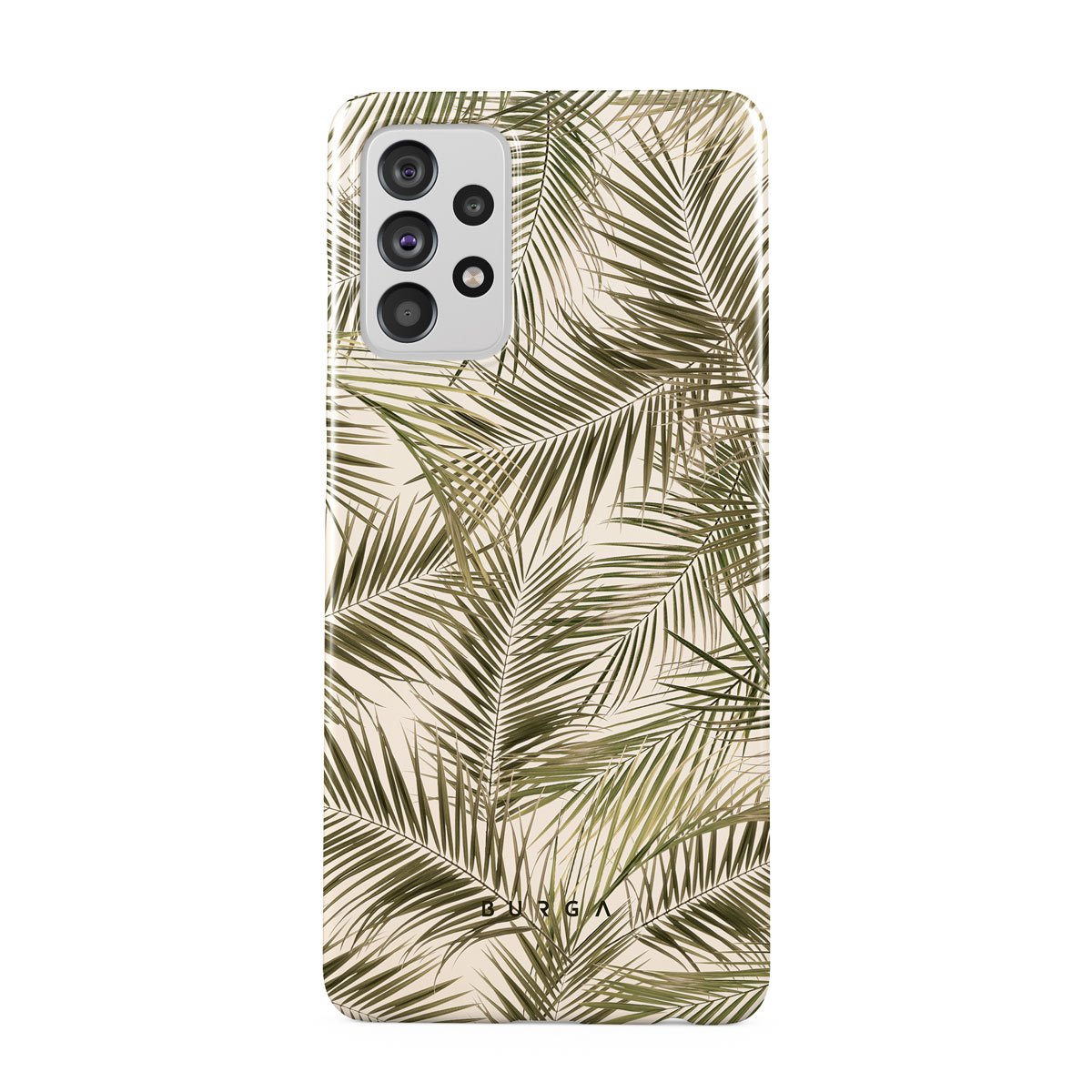 Some find happiness in the endless possibilities, and others find joy in the moments of relief. Can it be that you will find your happy place surrounded by palm leaves? Try our unique Samsung Galaxy A72 phone case design with bright palm leaves and add a statement to your style.