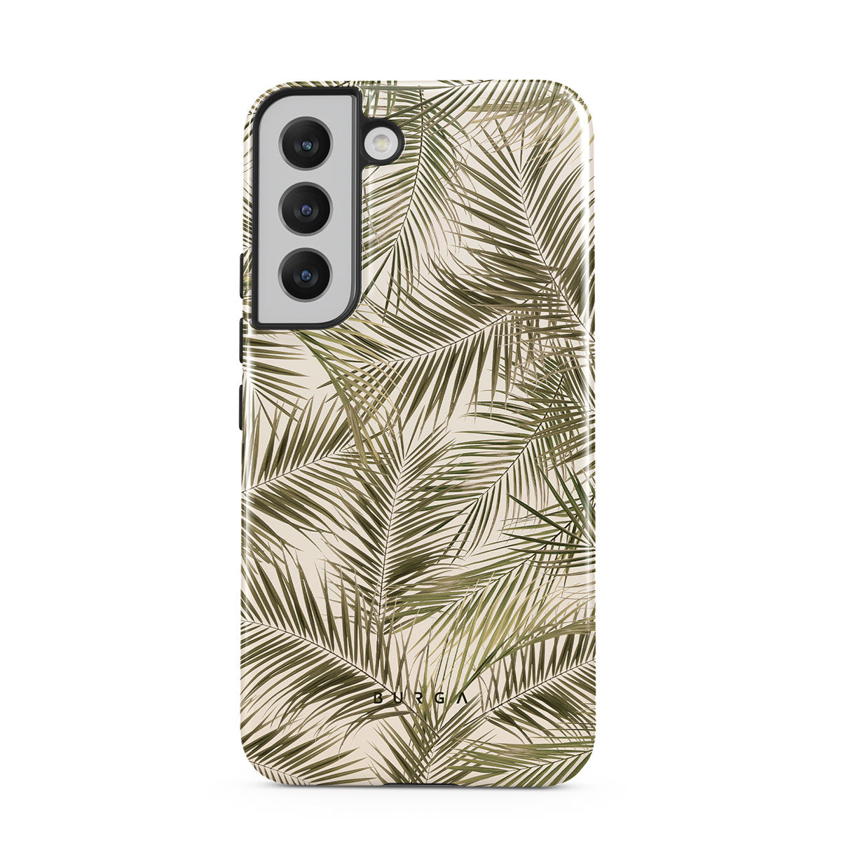 Some find happiness in the endless possibilities, and others find joy in the moments of relief. Can it be that you will find your happy place surrounded by palm leaves? Try our unique Samsung Galaxy S22 Plus phone case design with bright palm leaves and add a statement to your style.