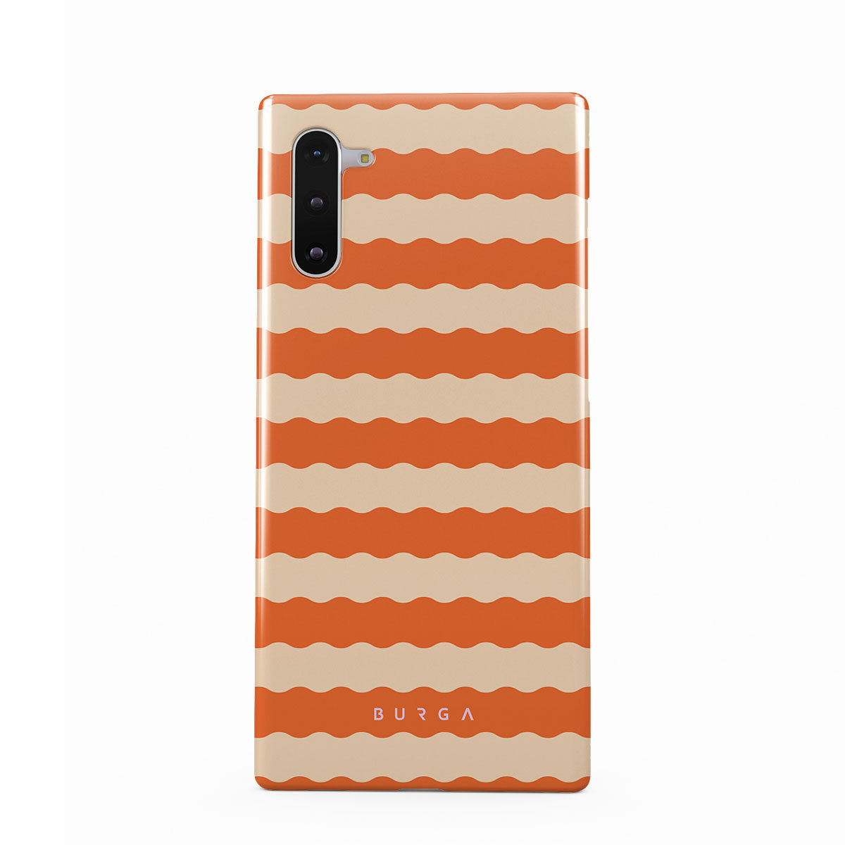 Unleash the tropical heat with the our Papaya design—a sizzling Samsung Galaxy Note 10 phone case that electrifies with fiery, wavy stripes of juicy papaya orange and smooth, creamy beige. Perfect for trendsetters craving a daring, sun-soaked style.