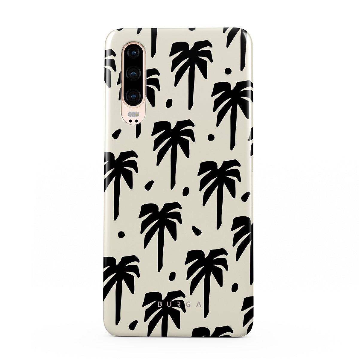 A peaceful haven right at your fingertips. The design contrasts black palm silhouettes against a calming light backdrop. Our Paraíso Huawei P30 phone case is your passport to an everlasting tropical escape.