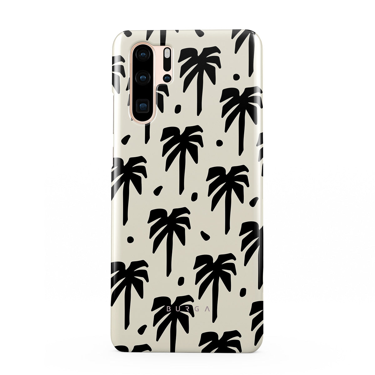 A peaceful haven right at your fingertips. The design contrasts black palm silhouettes against a calming light backdrop. Our Paraíso Huawei P30 Pro phone case is your passport to an everlasting tropical escape.