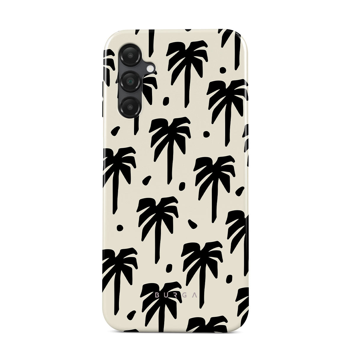 A peaceful haven right at your fingertips. The design contrasts black palm silhouettes against a calming light backdrop. Our Paraíso Samsung Galaxy A14 5G phone case is your passport to an everlasting tropical escape.