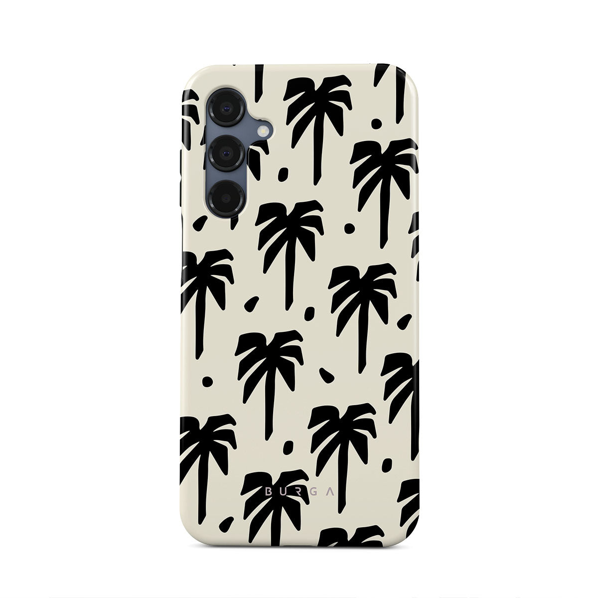 A peaceful haven right at your fingertips. The design contrasts black palm silhouettes against a calming light backdrop. Our Paraíso Samsung Galaxy A16 phone case is your passport to an everlasting tropical escape.