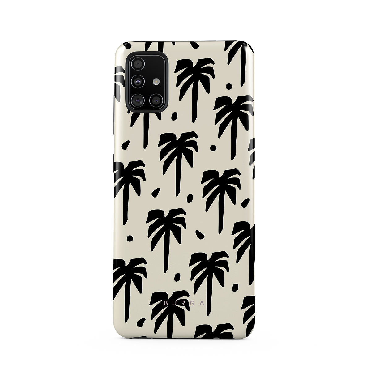 A peaceful haven right at your fingertips. The design contrasts black palm silhouettes against a calming light backdrop. Our Paraíso Samsung Galaxy A51 4G phone case is your passport to an everlasting tropical escape.