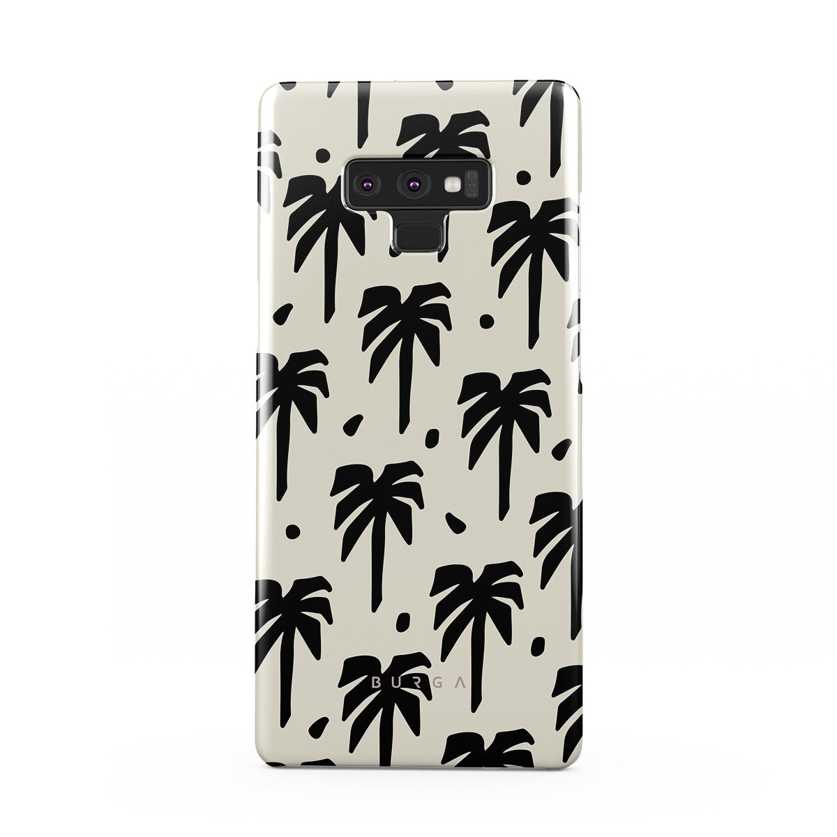 A peaceful haven right at your fingertips. The design contrasts black palm silhouettes against a calming light backdrop. Our Paraíso Samsung Galaxy Note 9 phone case is your passport to an everlasting tropical escape.