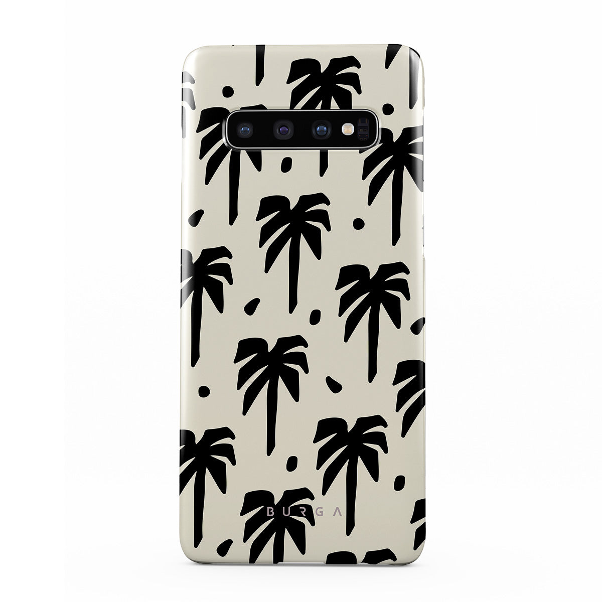 A peaceful haven right at your fingertips. The design contrasts black palm silhouettes against a calming light backdrop. Our Paraíso Samsung Galaxy S10 Plus phone case is your passport to an everlasting tropical escape.