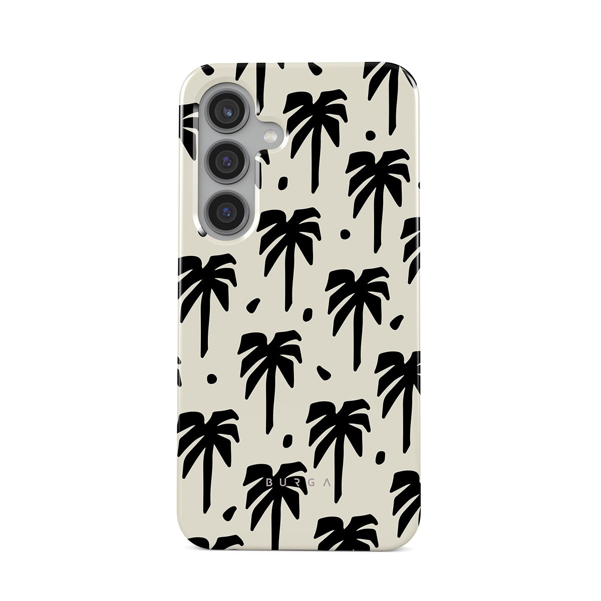 A peaceful haven right at your fingertips. The design contrasts black palm silhouettes against a calming light backdrop. Our Paraíso Samsung Galaxy S24 phone case is your passport to an everlasting tropical escape.