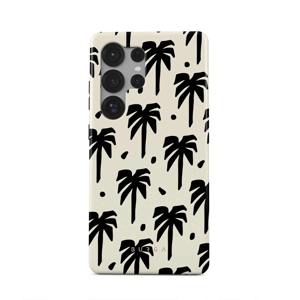 A peaceful haven right at your fingertips. The design contrasts black palm silhouettes against a calming light backdrop. Our Paraíso Samsung Galaxy S25 Ultra phone case is your passport to an everlasting tropical escape.