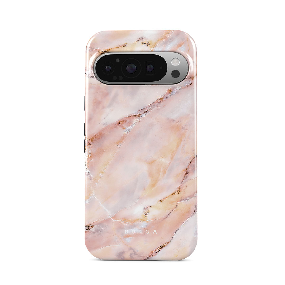 Morning Sunshine Google Pixel 9 Pro phone case features a timeless pastel marble design, inspired by the beauty of a sunrise. Soft hues of pink and orange will add warmth to your style. Keep your phone protected with sunshine in your pocket.