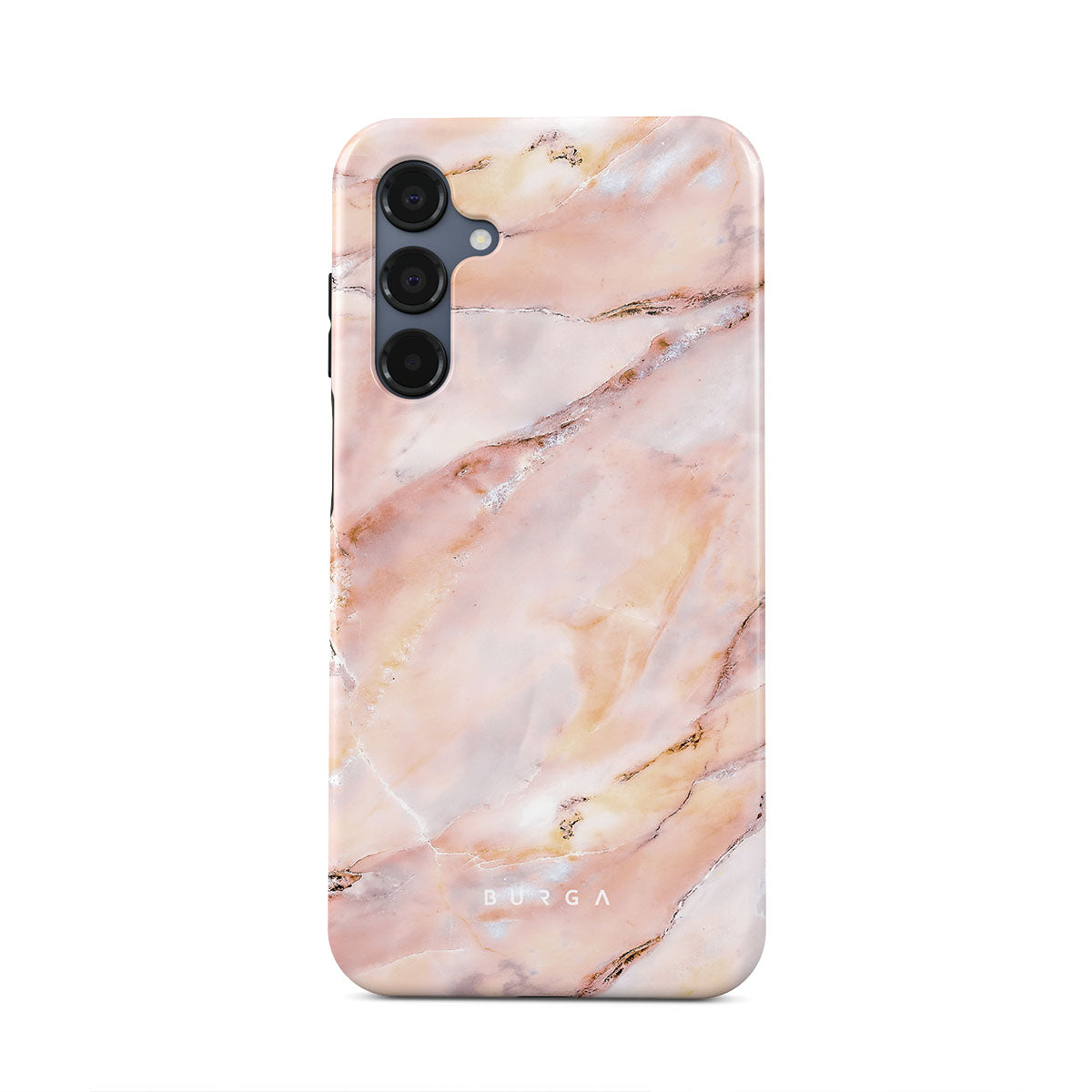 Morning Sunshine Samsung Galaxy A16 phone case features a timeless pastel marble design, inspired by the beauty of a sunrise. Soft hues of pink and orange will add warmth to your style. Keep your phone protected with sunshine in your pocket.